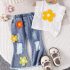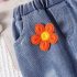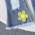 – Pantaloni tip clopot, din denim moale și elastic, cu talie confortabilă și croială evazată. În față sunt aplicate petice ușor uzate și flori 3D galbene – pentru un look urban și artistic.