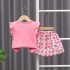 Set de 2 piese cu top cu volane și pantaloni evazați tip fustă Bunny Flowers Pink