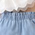 -Pantaloni scurți din denim moale, cu talie elastică ușor creponată pentru îmbrăcare confortabilă și cracii ușor răsuciți pentru un aspect modern și finisat.