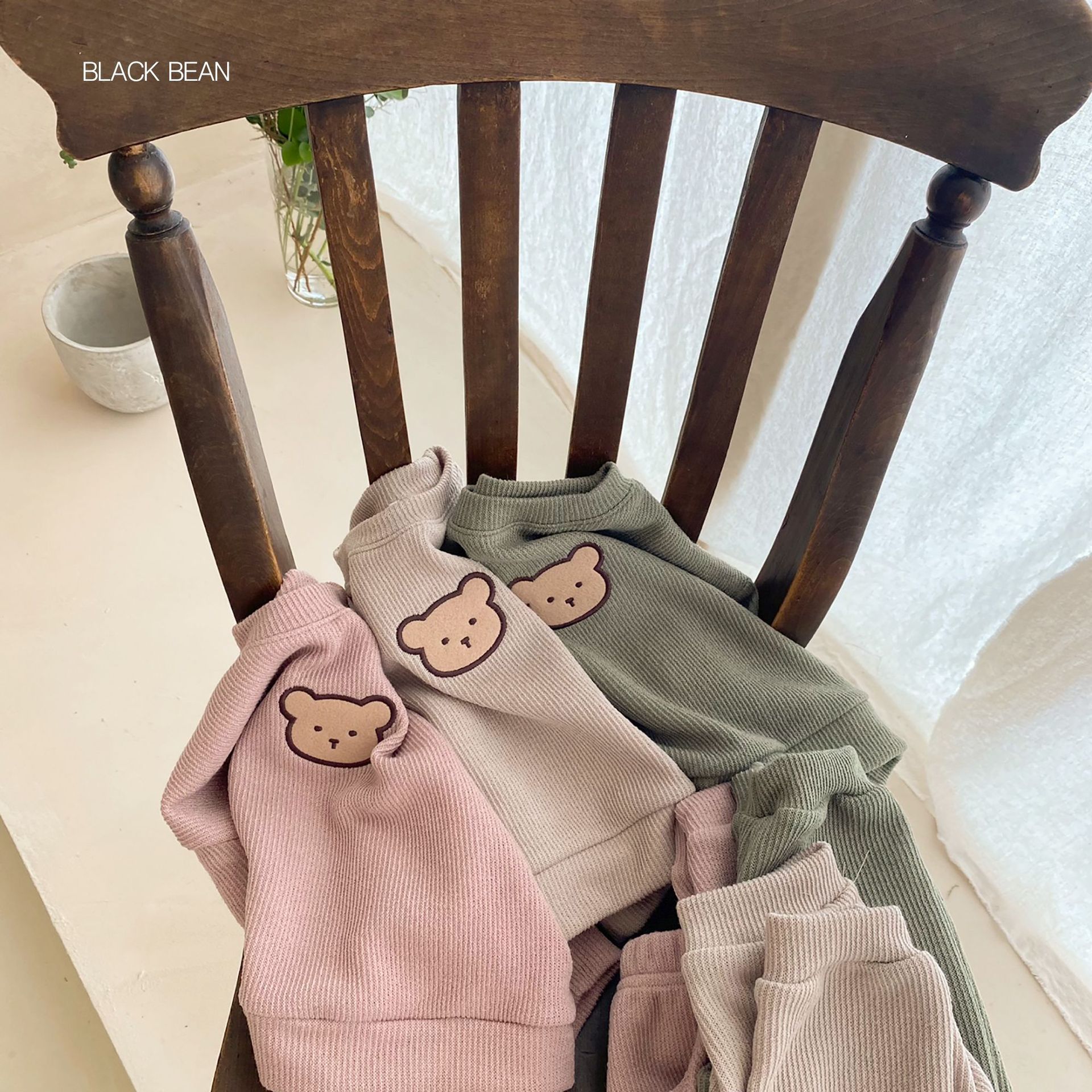 -Bluză din tricotaj ripsat de înaltă calitate, de culoare bej. Model simplu, cu croială standard și manșete elastice adăugate. Accent – aplicație cusută cu ursuleț în partea frontală.
