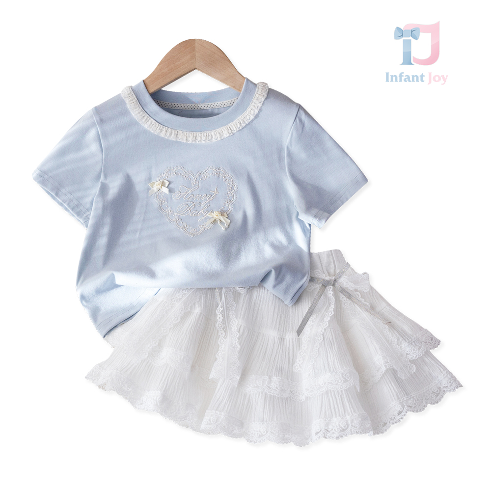 Set de 2 piese cu tricou cu broderie și fustă Honey Baby