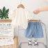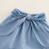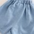 – Pantaloni scurți din denim cu croială ușor în A și cordon cusut din același material, care se leagă în față ca accent suplimentar. Talie elastică și croială lejeră pentru confort maxim.