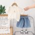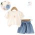 Set de 2 piese cu tricou cu element 3D, mâneci bufante și pantaloni scurți din denim cu curea Dandelion Grace