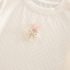 – Tricou crem, din material ușor și moale, cu textură discret reliefată. Model cu mâneci bufante scurte + element elastic. În centru se află un detaliu 3D delicat – aplicație cu un șoricel și o floricică pufoasă, care adaugă un aer jucăuș și delicat.
