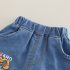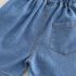 -Pantaloni scurți din denim cu talie elastică, pentru îmbrăcare ușoară și confort sporit – două buzunare în față și o aplicație veselă cu inscripție