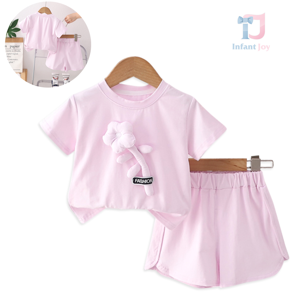 Set de 2 piese cu tricou cu floare 3D și pantaloni scurți Blossom Wink