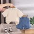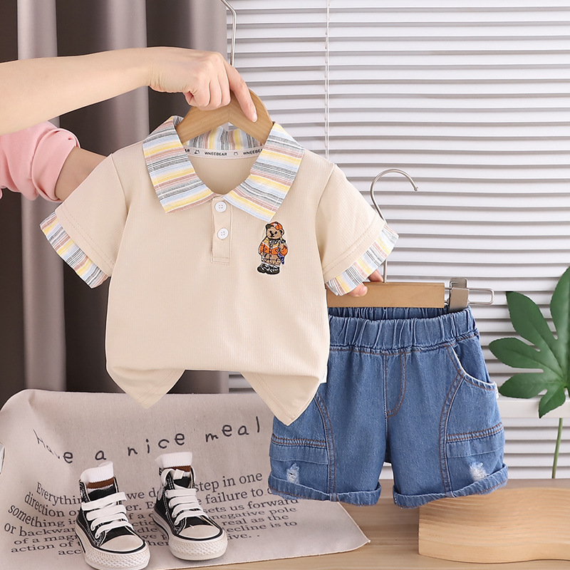 Set de 2 piese cu tricou cu guler clasic și pantaloni din denim Little Cadet Beige