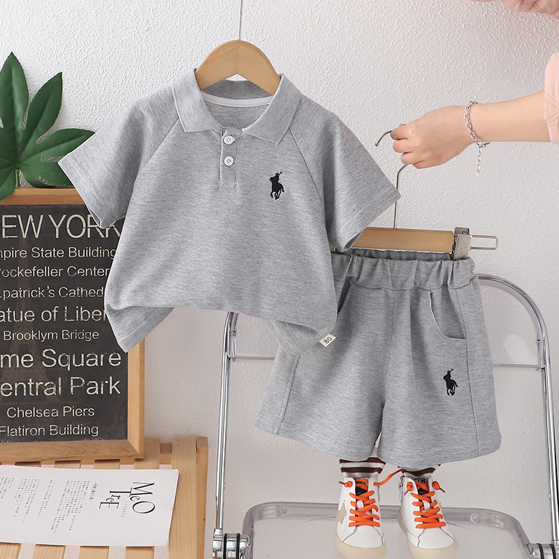 Set de 2 piese cu tricou cu guler clasic și pantaloni scurți cu broderii Classic Polo Grey