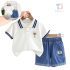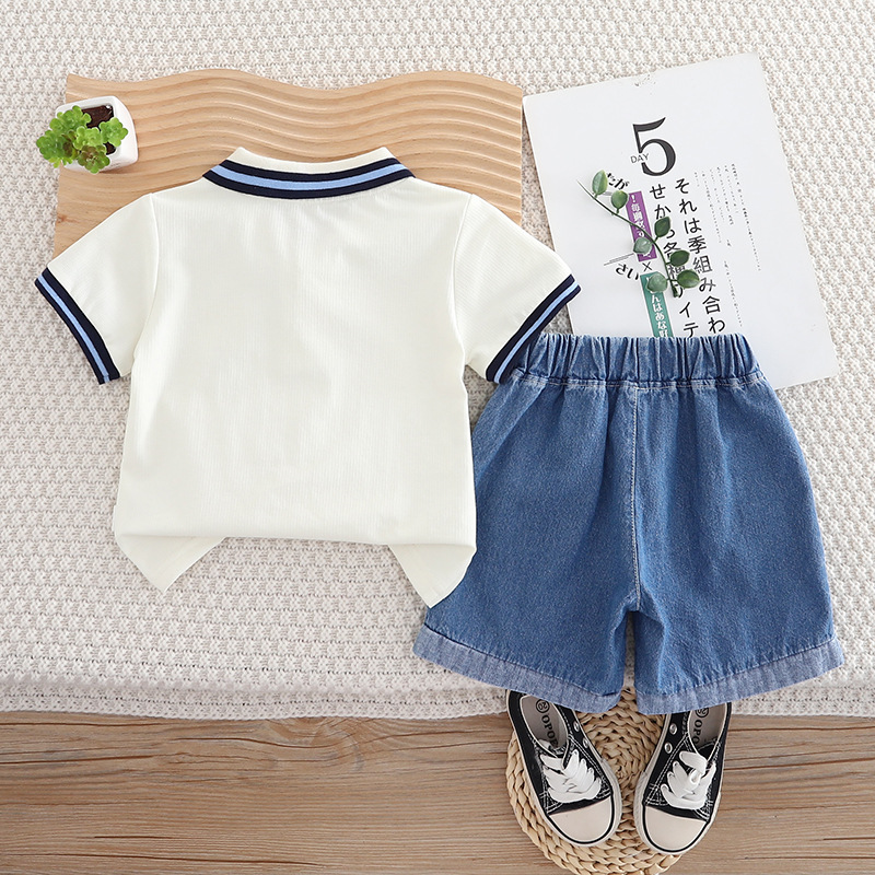 Set de 2 piese cu tricou cu guler clasic și pantaloni scurți din denim cu aplicație Key to Wonder Bear