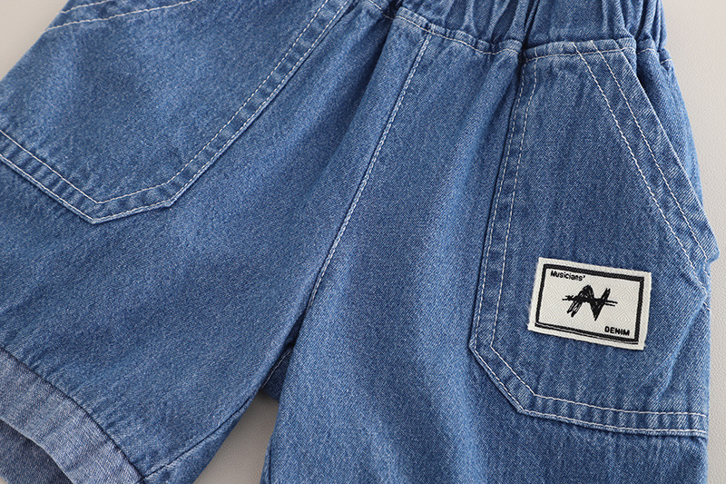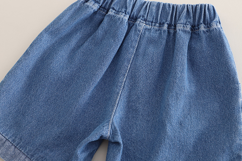 -Pantaloni scurți din denim, cu talie elastică pentru confort maxim și libertate de mișcare – modelul are două buzunare practice în față și o etichetă aplicată care completează designul jucăuș