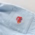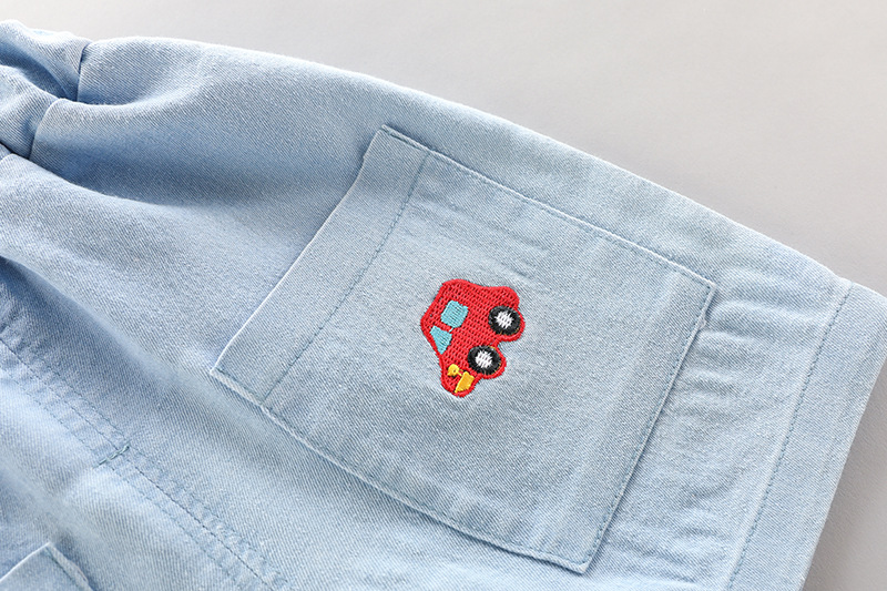 – Pantaloni scurți din denim moale, în nuanță bleu deschis. Talie elastică pentru confort, două buzunare frontale mari ca accent și broderie pe un crac.