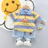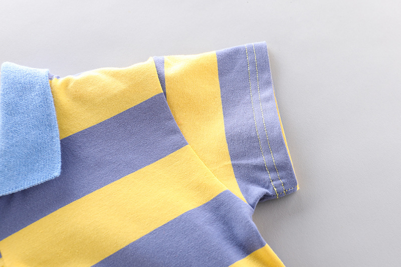 – Tricou/bluză din bumbac de calitate superioară, cu model în dungi albastre și galbene. Model cu guler clasic și nasturi în partea frontală. Decorat cu un imprimeu cu mașină și inscripție – pentru un look adorabil.