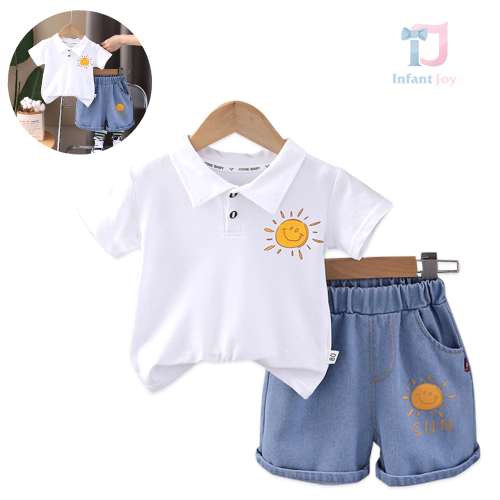 Set de 2 piese cu tricou cu guler clasic și pantaloni scurți din denim Sunny Day