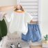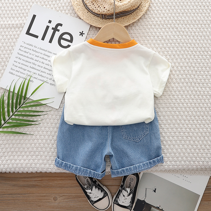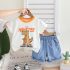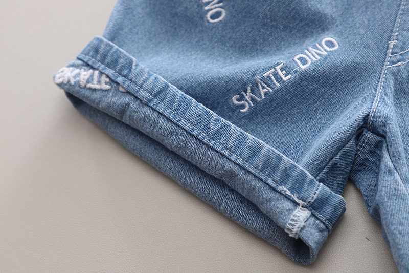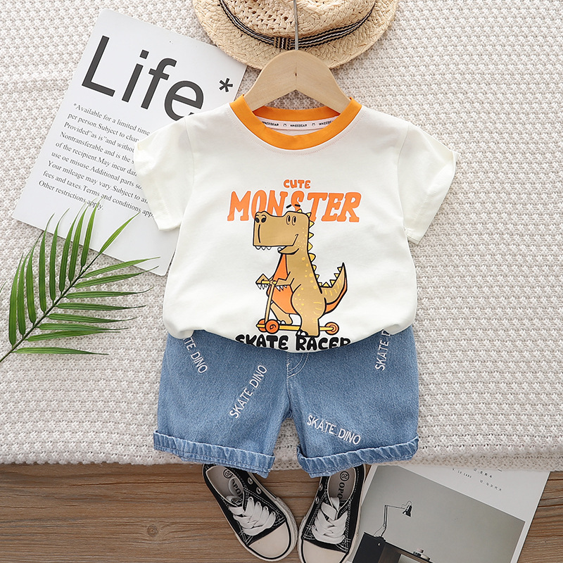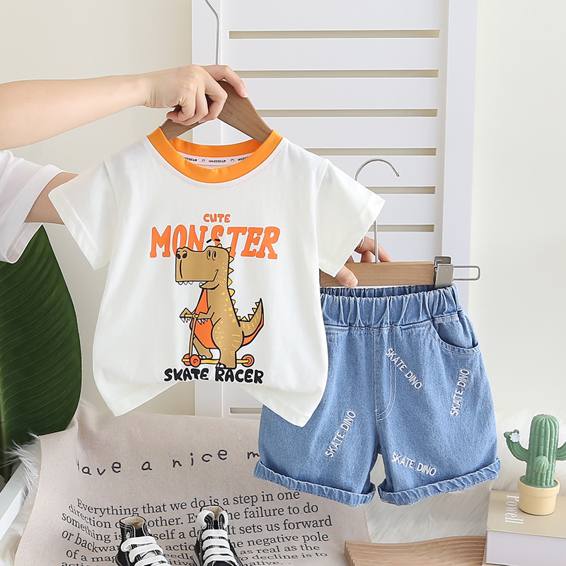 Set de 2 piese cu tricou cu imprimeu și pantaloni scurți din denim cu broderii Skate Dino