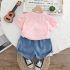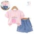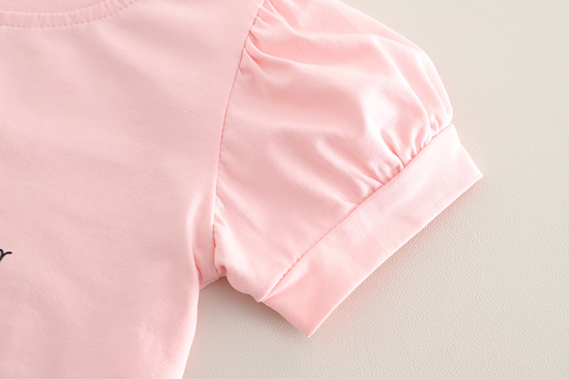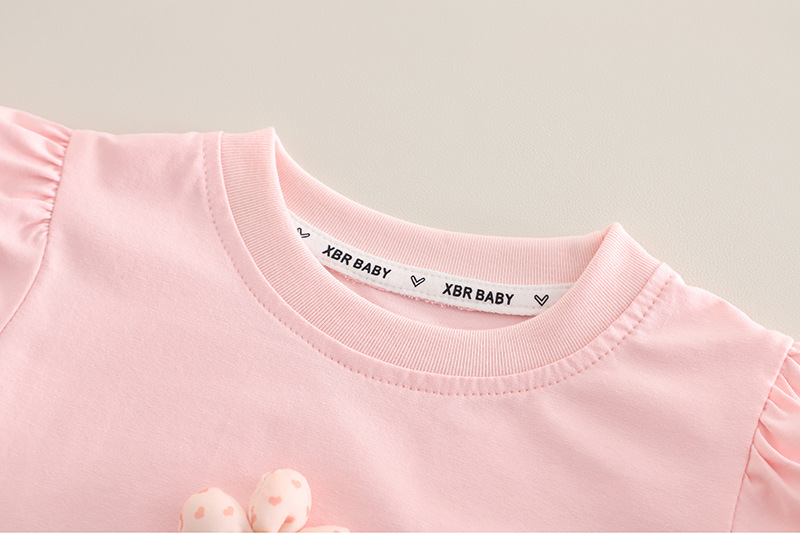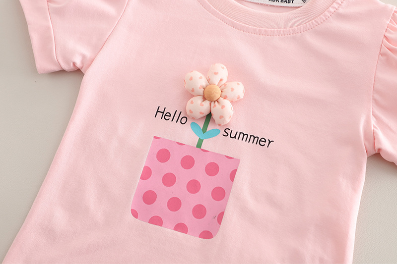 Set de 2 piese cu tricou cu mâneci bufante, element 3D și pantaloni scurți cu broderii Hello Flowerday Pink