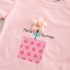 – Tricou lejer cu mâneci scurte bufante și decolteu rotund delicat, în culoare roz. Decorat cu un imprimeu fermecător cu un ghiveci și textul “Hello Summer”, completat de o floare 3D adorabilă realizată din bile textile – un detaliu unic și plin de textură.