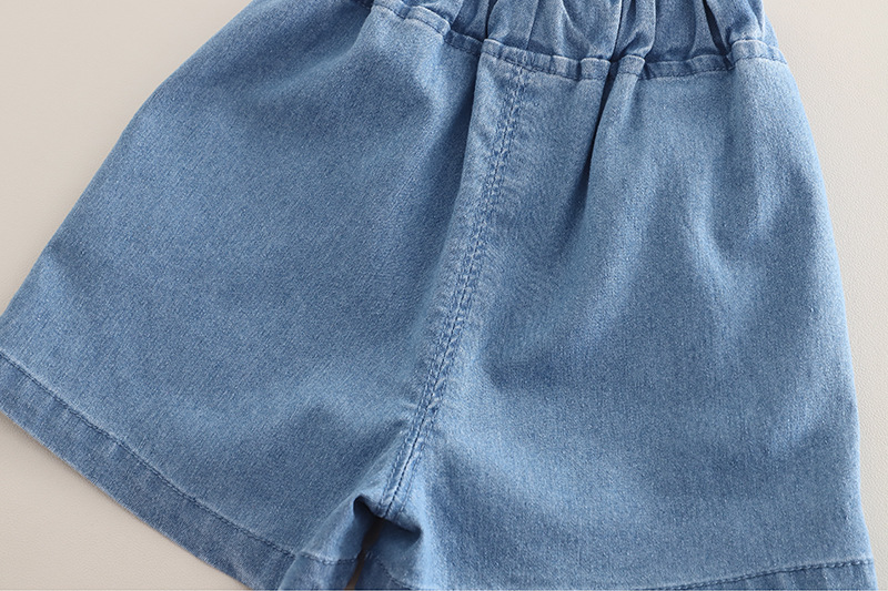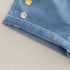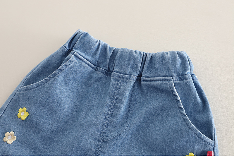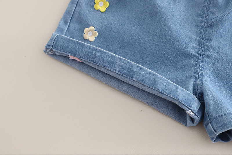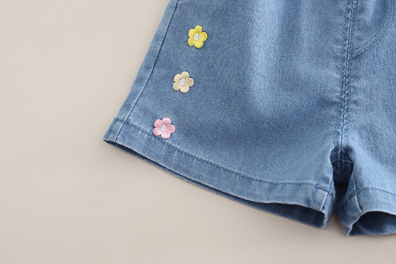 – Pantaloni scurți din denim, cu croială comodă și talie elastică pentru îmbrăcare ușoară și libertate de mișcare. În nuanță deschisă, decorați în față cu mici flori brodate în culori vii – jucăușe și discrete. Prevăzuți cu buzunare laterale – perfecte pentru micile comori de vară.