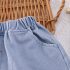 – Pantalonași din denim într-o nuanță de albastru deschis, realizați din material de blugi ușor, potrivit pentru zilele călduroase. Modelul are talie elastică pentru îmbrăcare ușoară și confort pe tot parcursul zilei. Partea de jos este finisată cu o dantelă delicată, adăugând o notă romantică și elegantă ținutei. Croiala este comodă, cu un siluet ușor lejer, pentru confort maxim la mișcare.