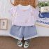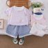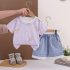 Set de 2 piese cu tricou cu multiple imprimeuri cu iepurași și pantaloni scurți din denim Hi Bunny Lilac