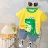 -Tricou din bumbac, în galben proaspăt, cu guler contrastant verde aprins. Model cu croială lejeră, decorat cu un imprimeu mare cu un dinozaur zâmbitor albastru, cu mâini, picioare și creastă 3D.
