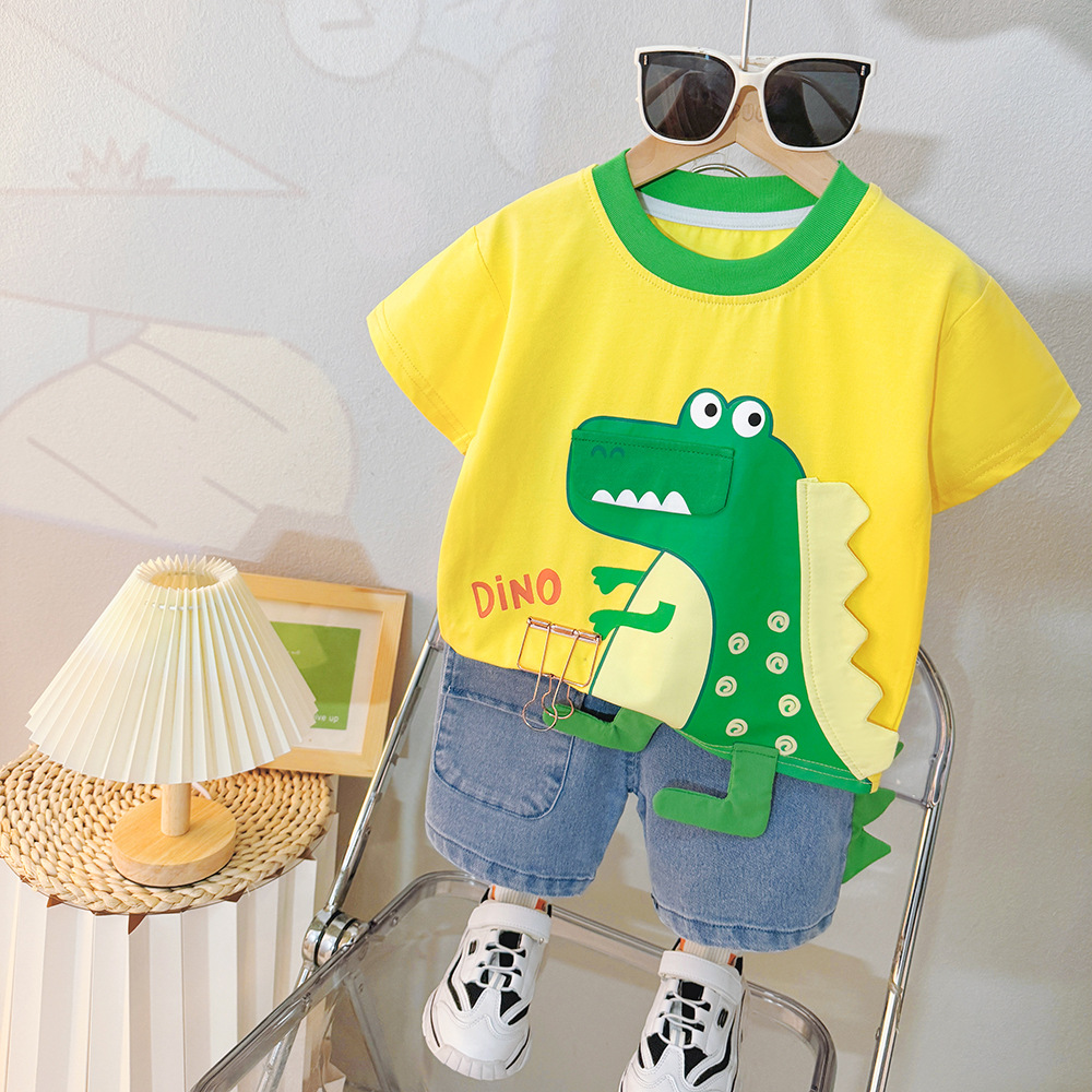 Set de 2 piese cu tricou și pantaloni din denim cu imprimeuri și elemente 3D Dino Play