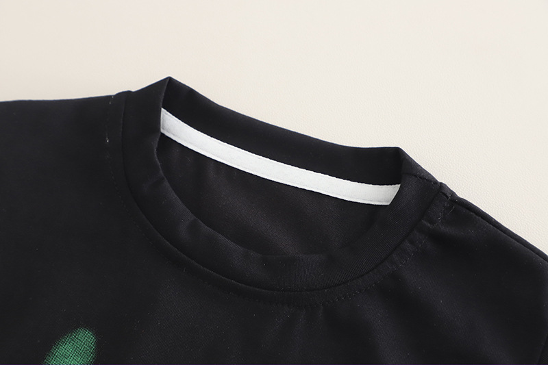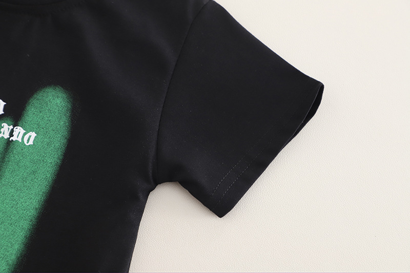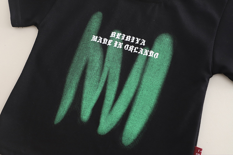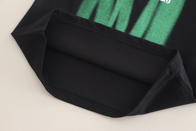 -Tricou cu mânecă scurtă, în culoare neagră, confecționat din bumbac moale – croială standard, decorat cu imprimeu verde neon și inscripție – un accent care evidențiază stilul liber și personalitatea