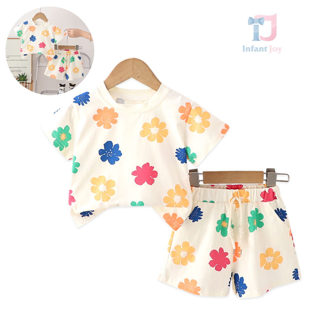 Set de 2 piese cu tricou și pantaloni scurți cu multiple elemente imprimate Sweet Flowers