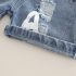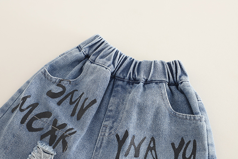 – Pantaloni scurți din denim, cu talie elastică și două buzunare frontale pentru confort. Accentul modelului: efect de uzură, detalii rupte și multiple inscripții imprimate.