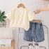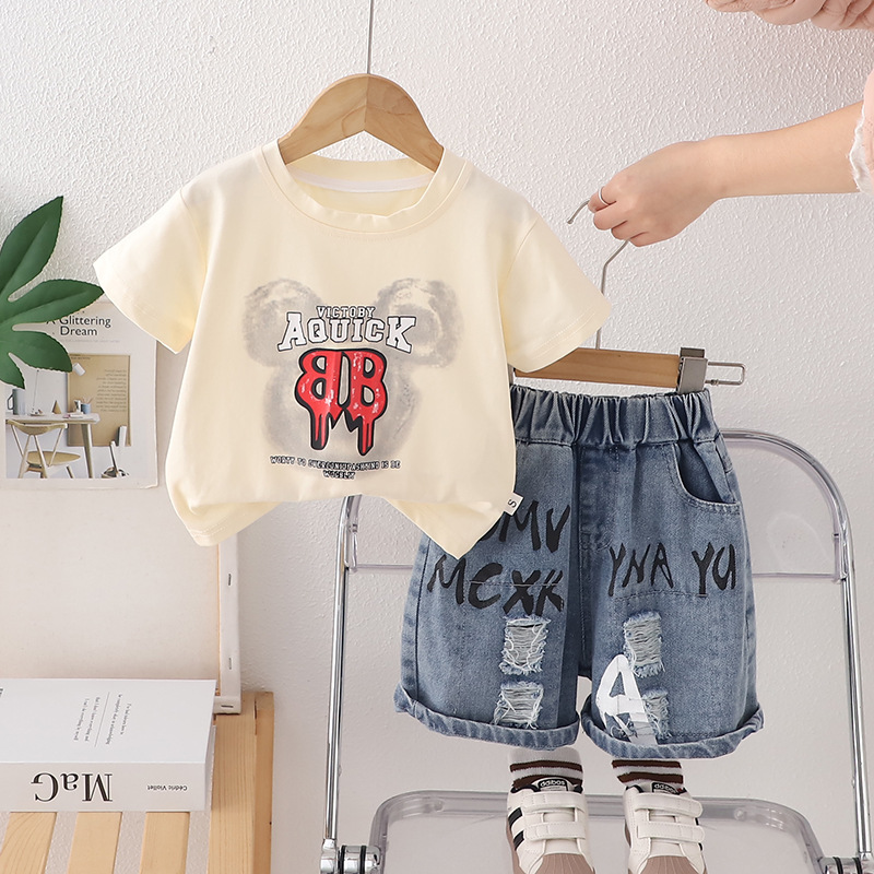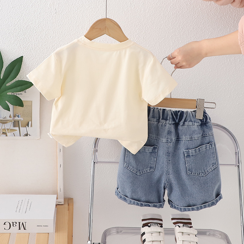 Set de 2 piese cu tricou și pantaloni scurți din denim cu multiple imprimeuri moderne Urban Beat Vanilla