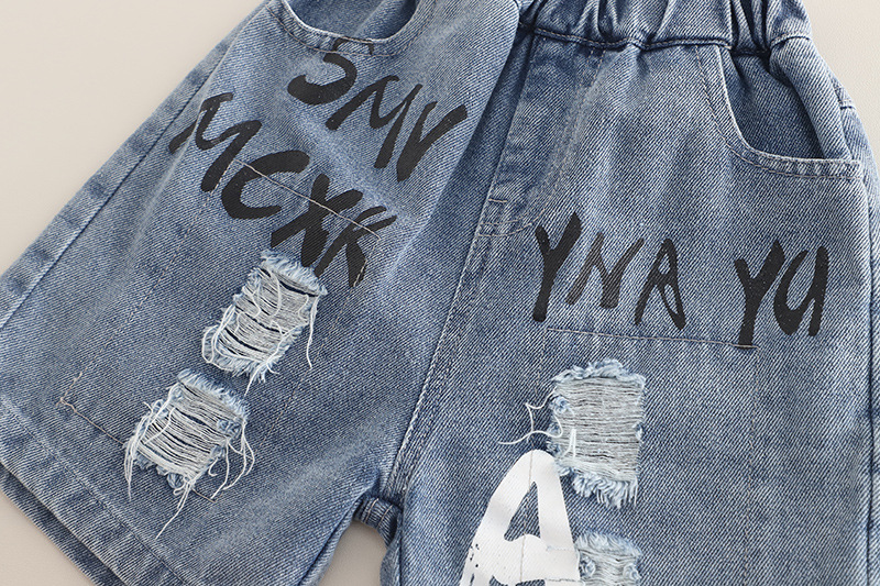 • Set de 2 piese cu tricou și pantaloni scurți din denim cu multiple imprimeuri moderne Urban Beat