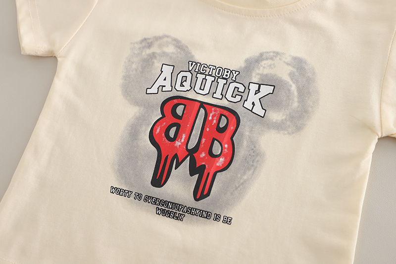 • Set de 2 piese cu tricou și pantaloni scurți din denim cu multiple imprimeuri moderne Urban Beat Vanilla