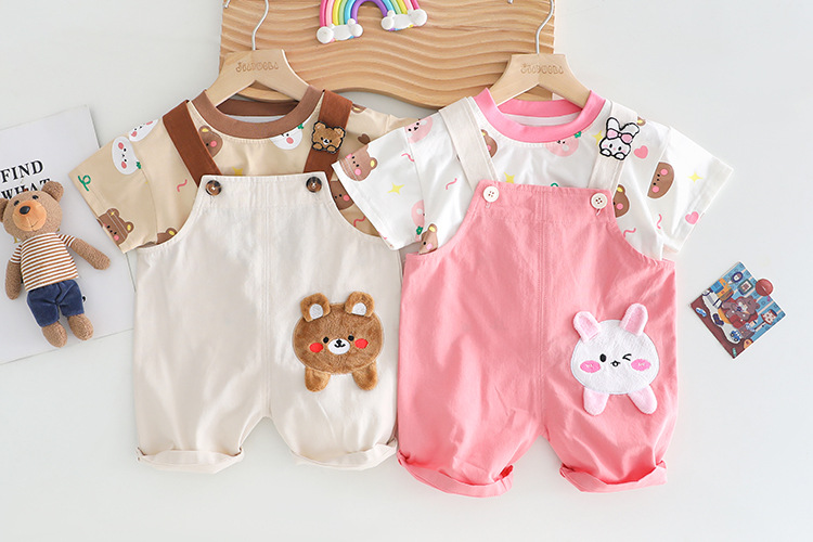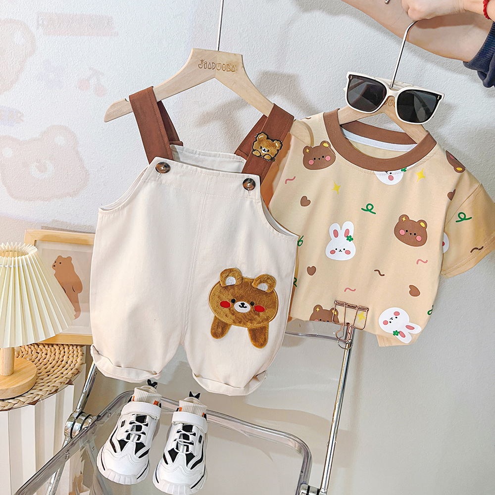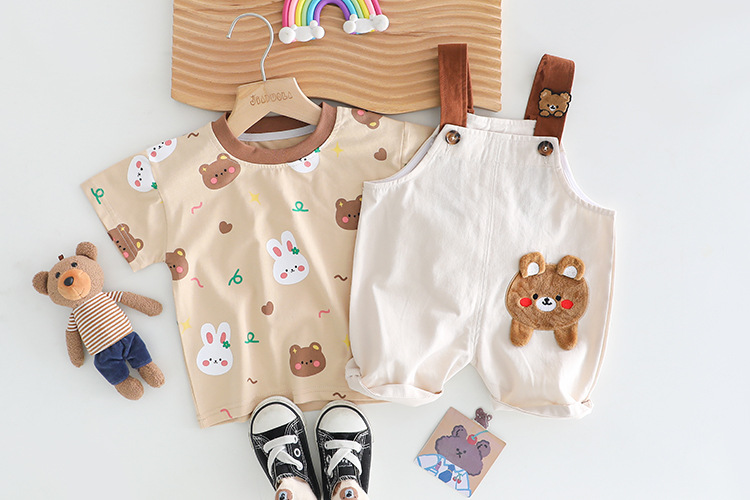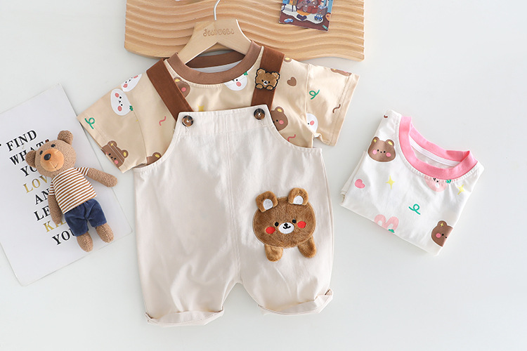 • Set de 2 piese cu tricou și salopetă cu aplicație Bear Wink