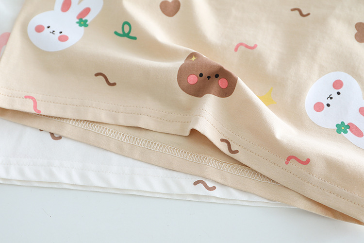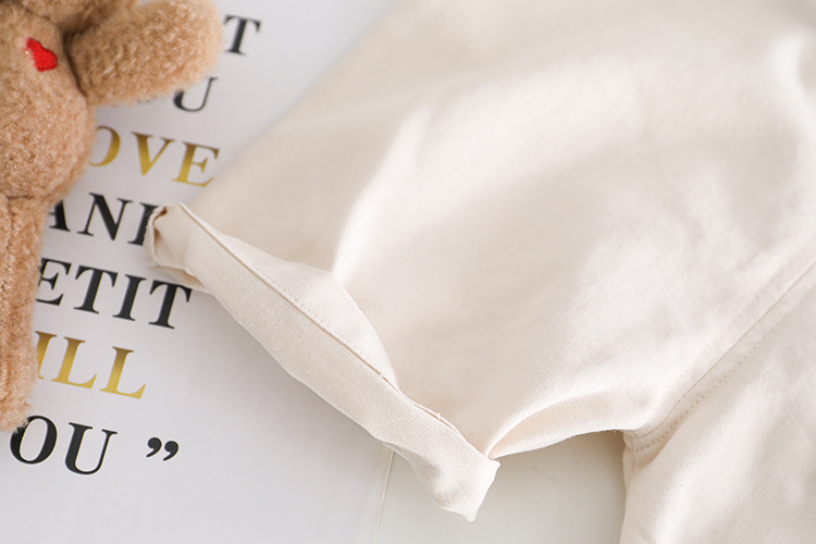 -Tricou din material rezistent, cu ușoară elasticitate, de culoare albă. Croială lejeră, decorat cu imprimeuri dispersate cu fețe zâmbitoare de ursuleți. Mâneci scurte și guler rotund, finisat delicat în nuanță bej.