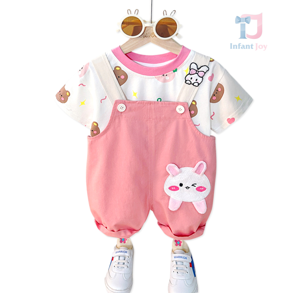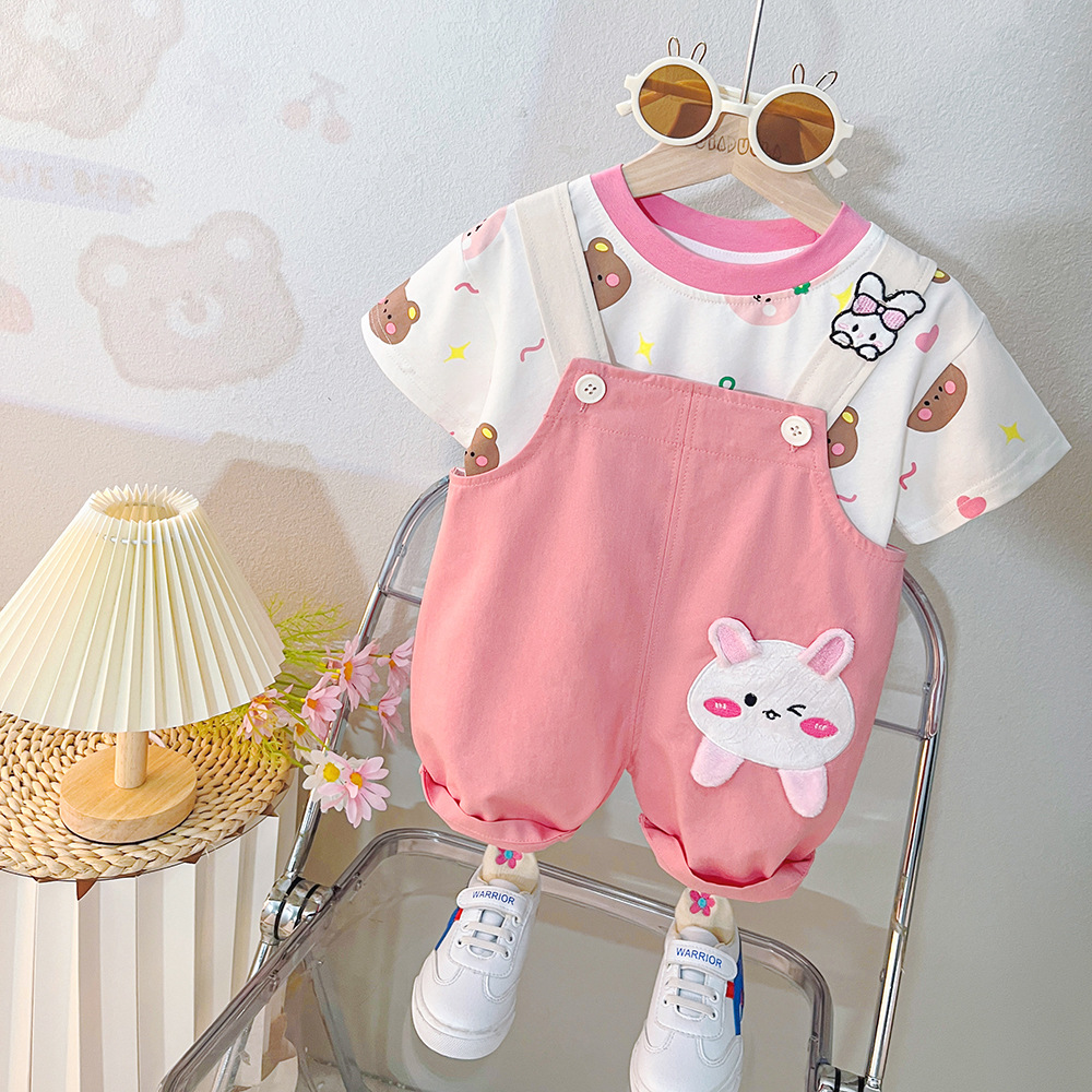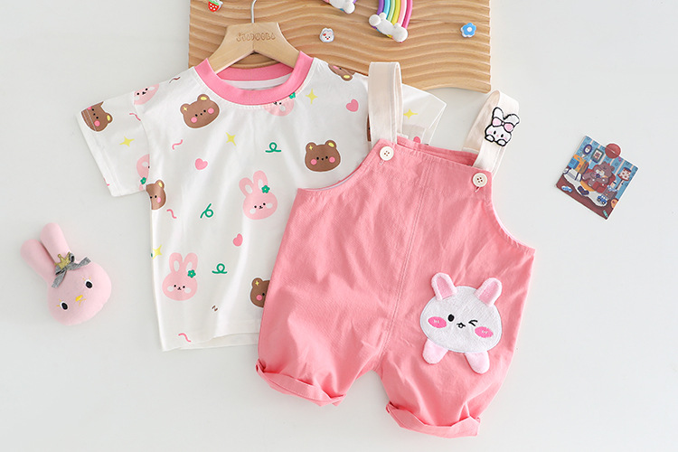 Set de 2 piese cu tricou și salopetă cu aplicație Bunny Wink