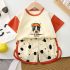 -Tricou crem cu mâneci contrastante portocalii. Confecționat din bumbac moale, cu decolteu rotund și imprimeu cu un cățeluș purtând șapcă și un mesaj – pentru un accent grafic jucăuș.