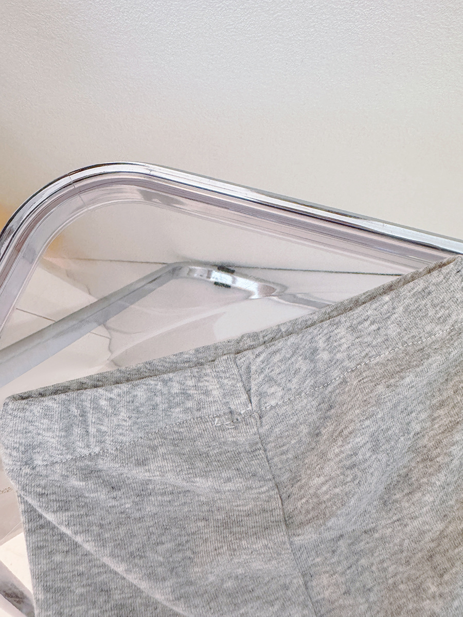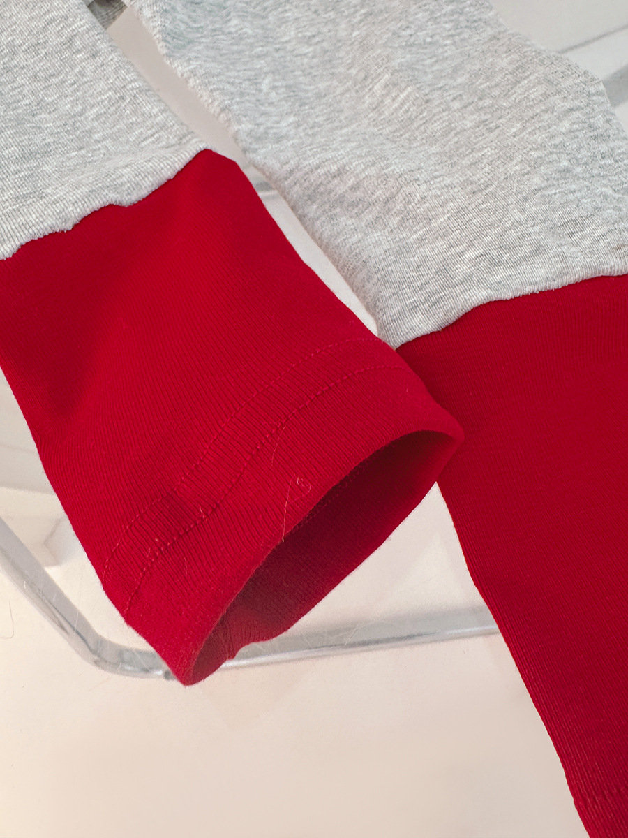 – Colanți gri comozi, din material moale și elastic. Manșetele roșii adaugă contrast și un plus de stil.
