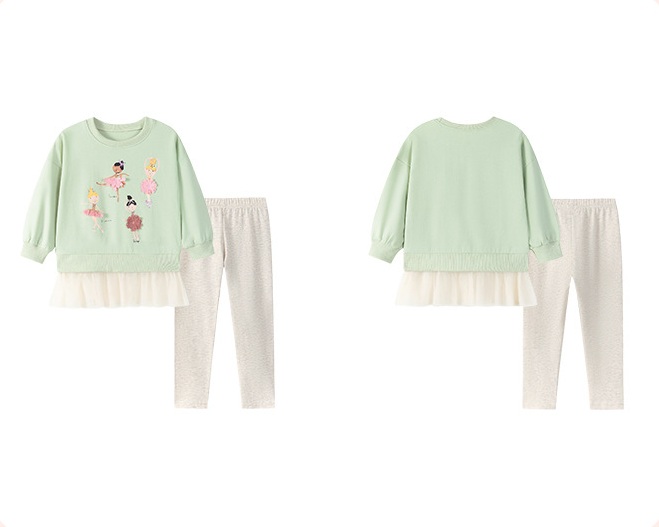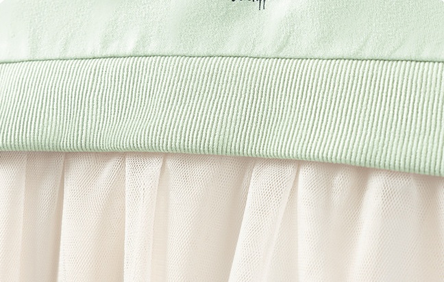 – Tunică din bumbac moale, într-o nuanță pastel de verde mentă, decorată cu aplicații cu balerine adorabile și elemente 3D din tulle. Partea inferioară plisată din tulle adaugă un accent rafinat modelului. Mâneci lungi, moi, cu manșetă elastică pentru confort pe tot parcursul zilei.