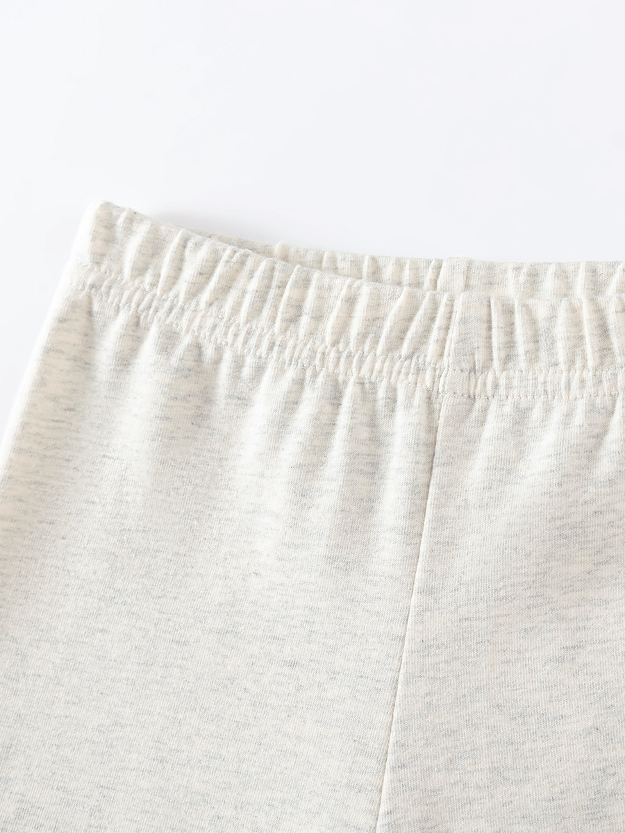 – Colanți simpli, de culoare gri deschis, din material elastic – potriviți pentru mișcare și joacă.