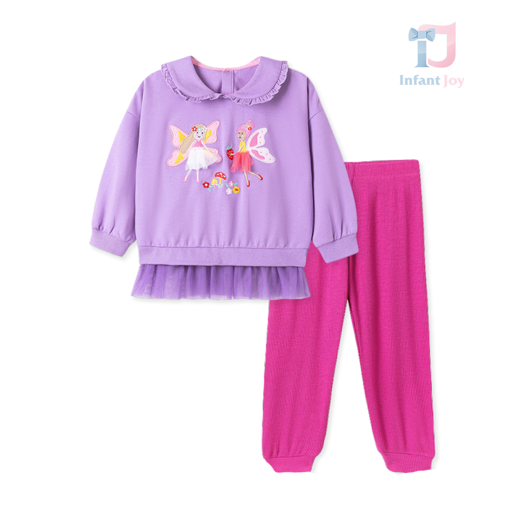 – Tunică/bluză tip hanorac în nuanță intensă de lavandă, cu zâne de poveste și aplicații 3D din tul. Partea inferioară plisată din tul, asemănătoare unei rochițe, adaugă un accent deosebit modelului. Gulerul frumos decorat cu volănașe conferă un farmec vintage. Închidere la spate cu nasturi pentru o îmbrăcare ușoară.