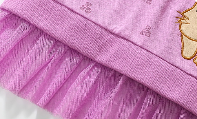 -Bluză/tunică din material de bumbac de înaltă calitate, de culoare violet. Model alungit, cu diverse imprimeuri, o aplicație cu iepuraș și o fundiță 3D, plus un accent de tul în partea de jos pentru un aspect cochet.