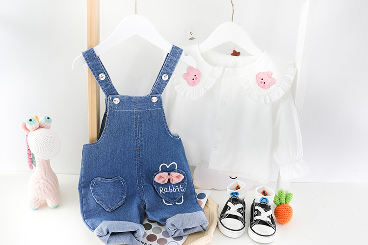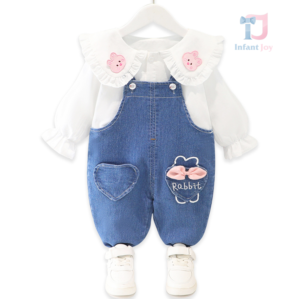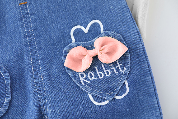 Set de 2 piese cu elemente 3D și salopetă din denim Cutie Rabbit