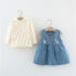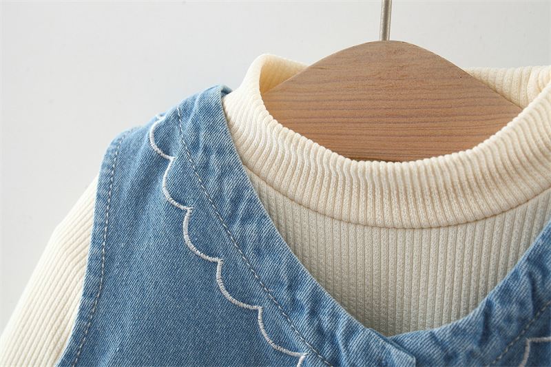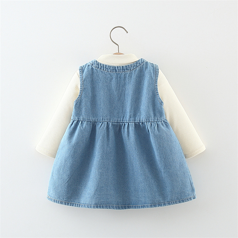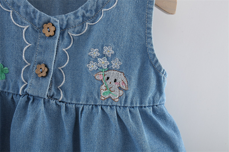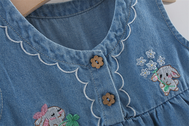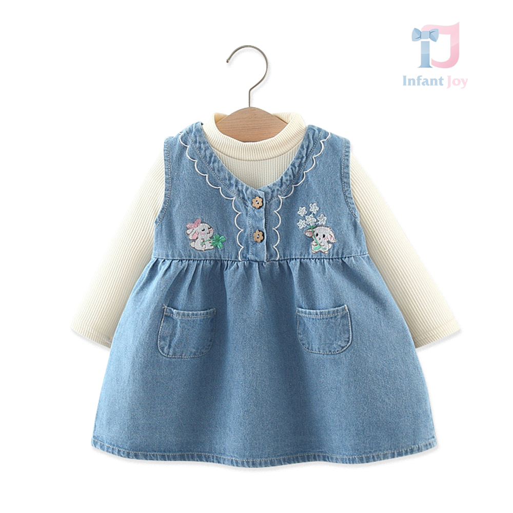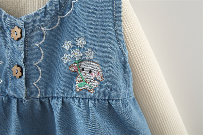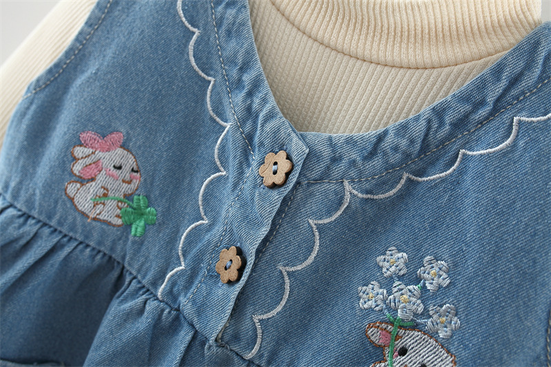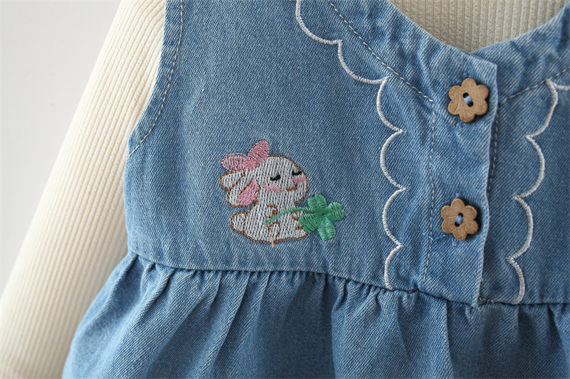 Set de 2 piese cu bluza si rochie denim cu broderie Denim Bunny
