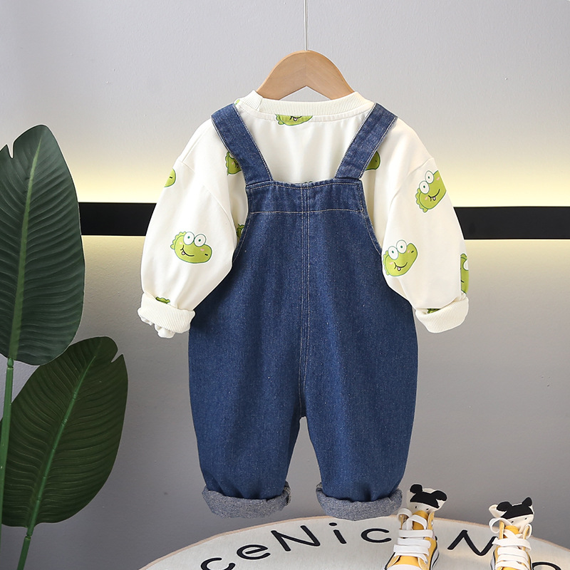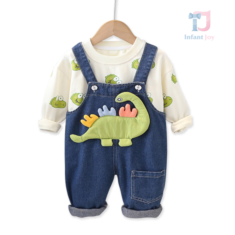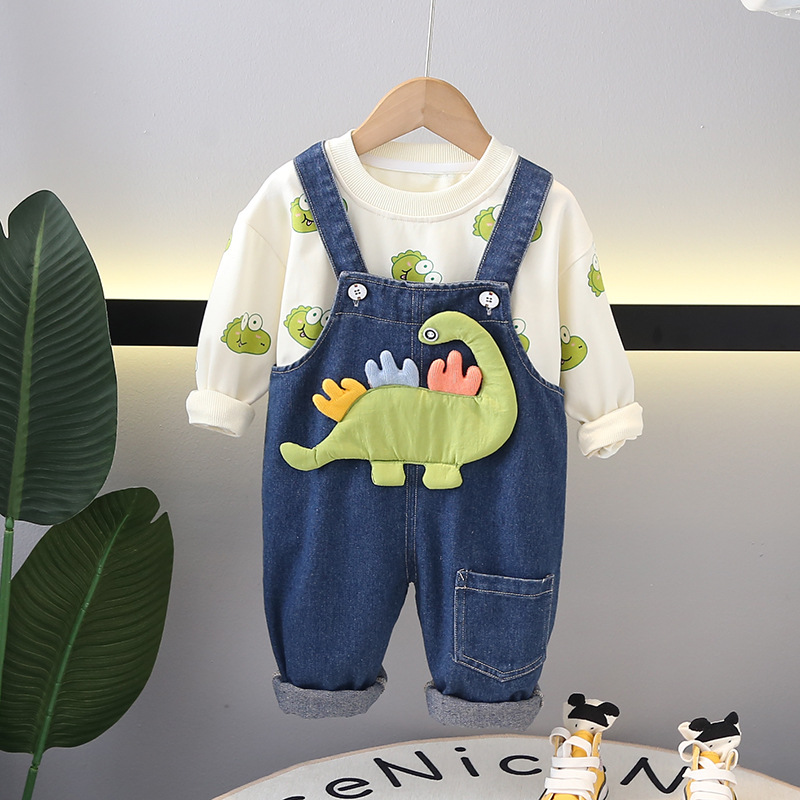 Set de 2 piese cu salopetă din denim și element 3D Denim Dino