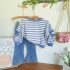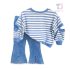 Set de 2 piese din bluză extravagantă în dungi și pantaloni din denim tip charleston Blue Marina