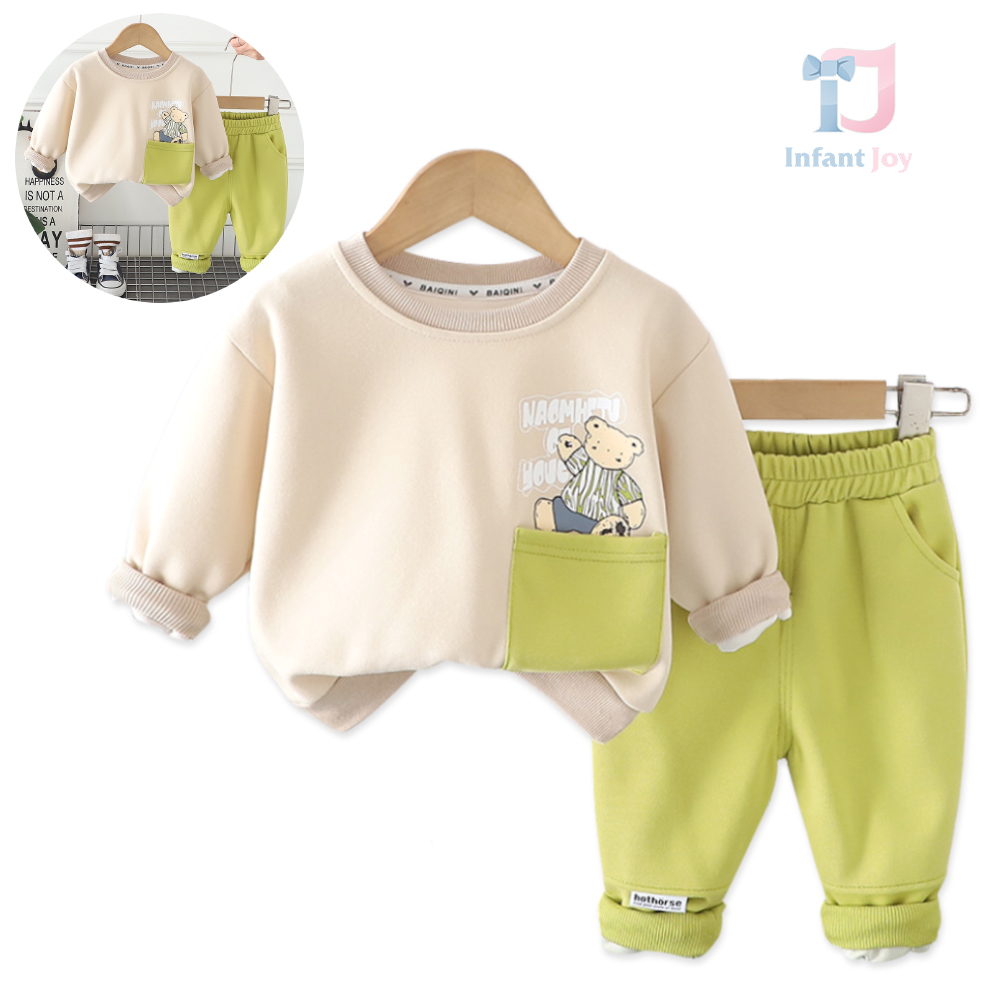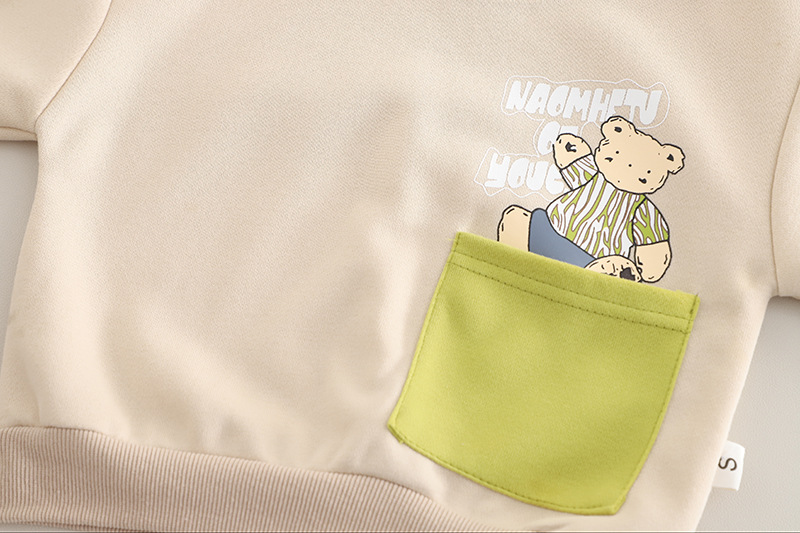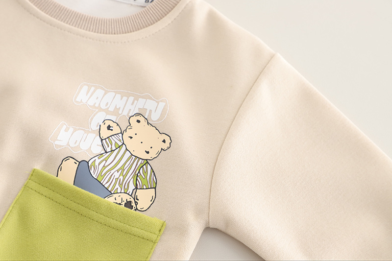-Bluză/hanorac confecționat din material de înaltă calitate, în nuanță ecru. Croială standard și lejeră, care nu restricționează mișcarea + manșete elastice la mâneci și talie pentru confort maxim și menținerea căldurii. Buzunar decorativ într-o culoare contrastantă + imprimeu drăgălaș cu ursuleț – un accent care atrage atenția.
