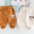 -Pantaloni asortați cu partea de sus, cu talie și manșete elastice + două buzunare frontale și imprimeu cu o versiune mini a ursulețului pe un crac.