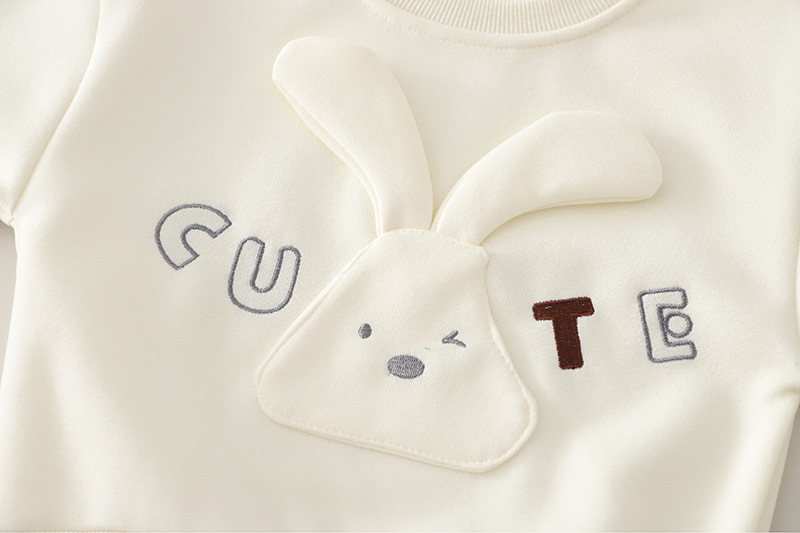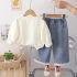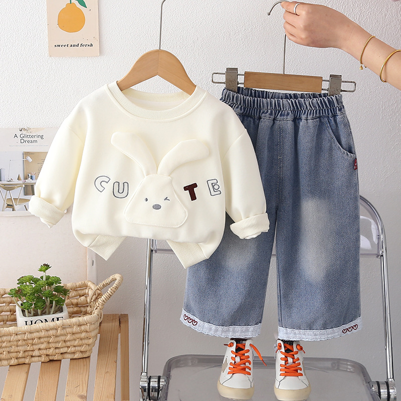Set de 2 piese din bluză/sweatshirt cu elemente 3D, broderii și pantaloni din denim Cute Bunny Vanilla