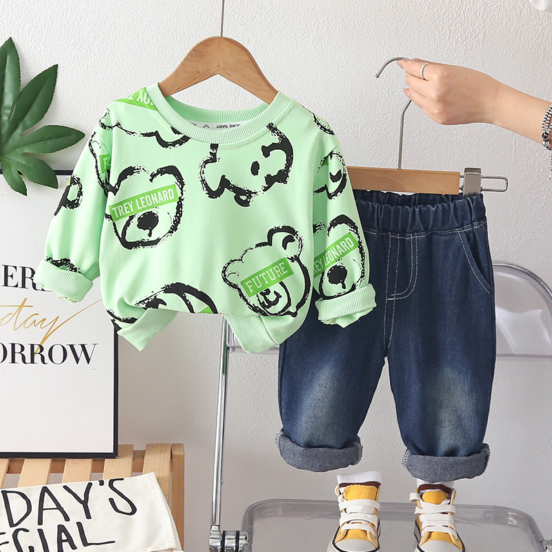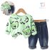 • Set de 2 piese din bluză/sweatshirt cu imprimeuri și pantaloni din denim Leonardo Green