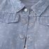 – Cămașă scurtă din denim, confecționată dintr-un material moale și plăcut la atingere, într-o nuanță de albastru deschis, cu un imprimeu delicat cu mici floricele. Modelul are guler clasic, mâneci scurte ușor încrețite și închidere cu nasturi în față. În partea frontală are buzunare decorative cu clapete, care adaugă un aspect finisat și modern. Croiala este ușor scurtată, creând un siluet elegant.