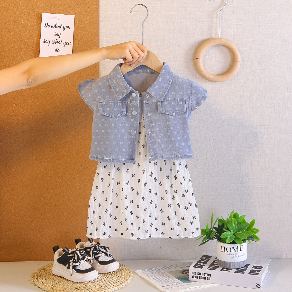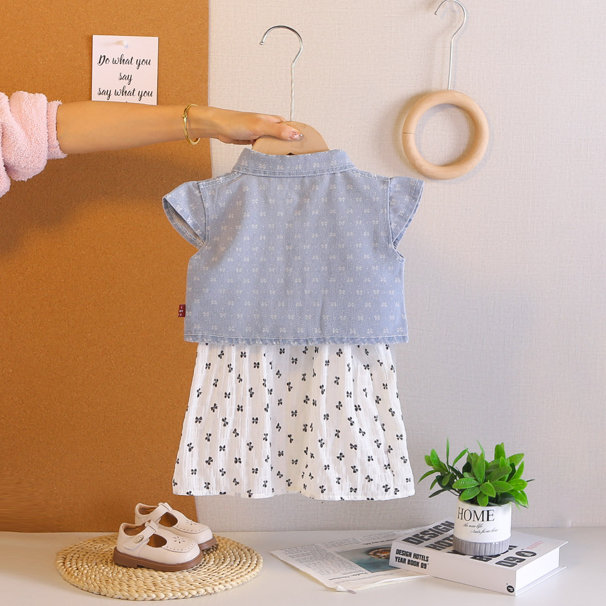 Set de 2 piese din cămașă din denim și rochie vaporoasă Little Charm